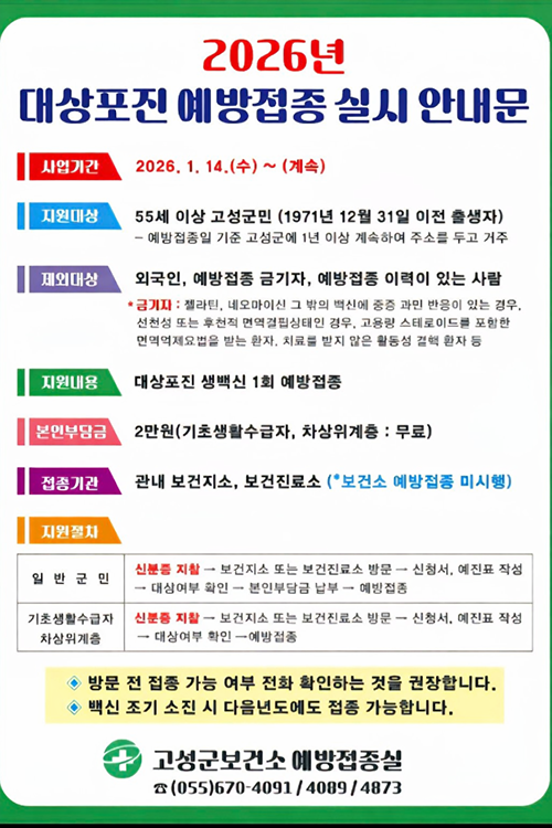 - 고성군, ‘대상포진 예방접종...고성인터넷뉴스