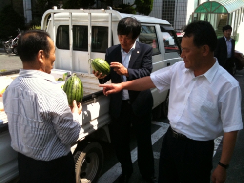 수박 작목반의 이런 딱한 사정을 알게 된 송정현 의원은 동료의원인 김홍식 박기선 의원의 도움을 받아 작목반에서 실어 온 100박스의 수박을 내다 팔게 된 것이다.