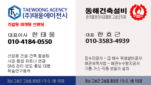 발행소 : 경남 고성군 고성읍 중앙로 48 동외빌딩 | 청소년보호책임자 : 한창식 | 사업자 번호 : 612-03-63094