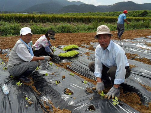 이번 배추재배 행사에는 거류면사무소 노인일자리와 공공근로자 24명과 고성읍 노인일자리와 공공근로자 22명을 비롯해 고성지역자활센터 20명, 한국자유총연맹 고성군지부 회원 15명, 서금요법(수지침)봉사단 5명 등 많은 사람들이 주민협의회 회원들과 함께 더운 날씨에도 아랑곳하지 않고 배추수확의 기쁨을 생각하며 즐거운 마음으로 배추모종 12,000포기를 심었다.
