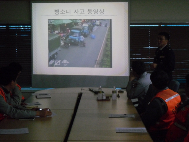 이날 안전교육 강사로 위촉된 최오경 교통관리계장은 조선소 근로자들의 교통사고 예방을 위해 이륜차 운행 시 주의사항과 음주운전·중앙선침범·신호위반 등 교통법규 위반행위 금지, 특히 화물차량 난폭운전 금지 등을 당부했다.