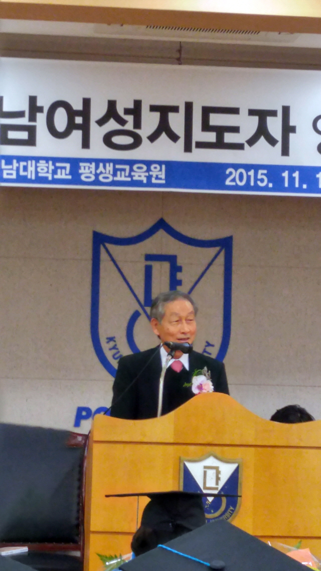 이어 우명희 경남도 여성가족정책관은 "졸업은 또 다른 시작이다"며 사회로 나가 여성 지도자로서 도정에 적극협조와 홍보를 바란다“며 오늘의 수료식이 있기까지 경남대학교총장을 비롯한 관계자들에게 깊은 감사를 표했다.