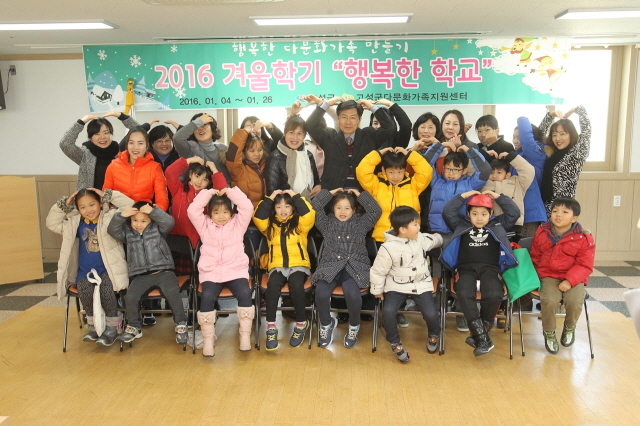 한편, ‘2016년 겨울학기 행복한 학교’는 다문화 가정 자녀를 대상으로 햇살반(6, 7세 아동)과 키움반(초등 1, 2학년 아동) 2개 반으로 나눠 국어, 수학, 체육, 만들기 등의 맞춤형 수업이 진행됐다.