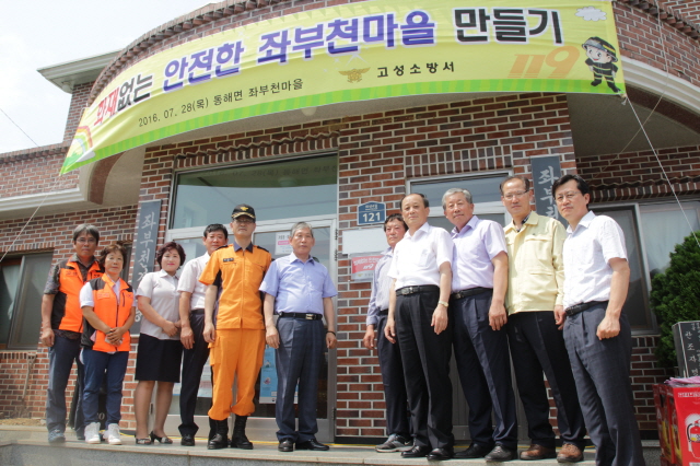 고성소방서(서장 이수영)는 지난 28일 동해면 외산리 좌부천 마을에서 소방공무원, 도의원, 군의원, 동해면장, 유관기관과 마을주민, 의용소방대원 등이 참여한 가운데 제10호 화재 없는 안전마을 조성행사를 실시했다고 밝혔다.