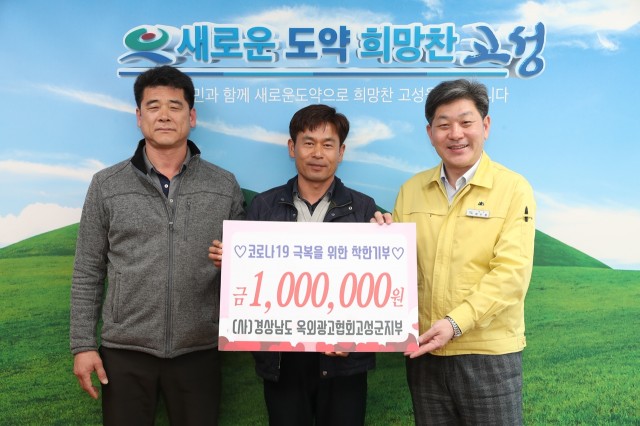 (사)경상남도 옥외광고협회고성군지부(지부장 양찬호)는 3월 18일, 고성군청을 찾아 코로나19 이기기 착한기부 이어가기에 함께 할 뜻을 밝히며 성금 100만 원을 맡겼다.