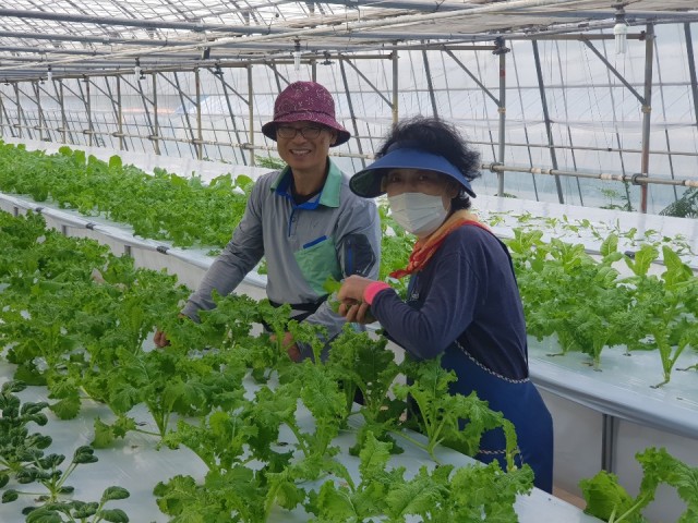 고성군(군수 백두현)이 ‘순환식 분무수경시스템을 이용한 잎채소 재배 시범사업’을 마치고 쌈 채소 수확을 시작했다.