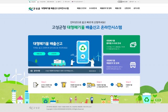 가구, 가전폐품, 사무용기자재와 같은 여러 가지 대형폐기물을 버릴 경우 대형폐기물 배출 온라인 시스템 홈페이지(www.goseong.go.kr/waste)를 거쳐 배출 신고를 하면 된다.