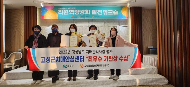고성군(군수 이상근) 치매안심센터가 11월 25일 2022년 경상남도 치매관리사업 평가에서 최우수 기관상을 받았다.