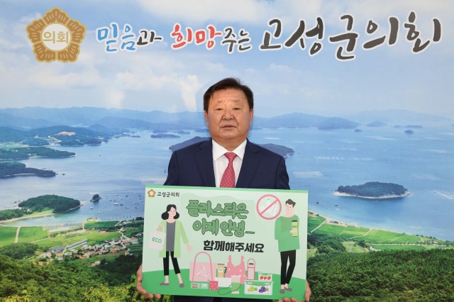 최을석 고성군의회 의장이 플라스틱 소비 줄이기 운동에 동참했다.