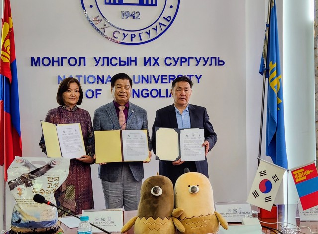 고성군(군수 이상근)은 6월 25일, 몽골국립대학교에서 몽골국립대학교 인문과학대학 볼드 에르덴 바스트 학장과 몽골조류학회 바트출룬 투브신 회장과 함께 ‘독수리 보호와 상호 교류’를 위한 양해각서(MOU)를 맺었다.
