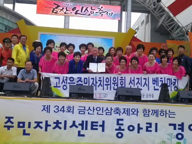 고성읍 주민자치위원회(위원장 어경효)는 지난 26일, 제34회 금산인삼축제 성공 개최 기원 전국 주민자치센터 동아리 경연대회에 노래교실 동아리(회장 황춘자)가 참가해 은상을 수상했다고 밝혔다.