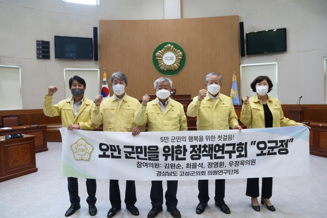 5만 군민을 위한 정책연구회(오군정)는 5만 군민을 위한 지역발전 정책을 마련하기 위해 구성된 모임으로 김원순 대표의원을 포함해 4인(우정욱, 최을석, 정영환)의원으로 구성돼 있다.