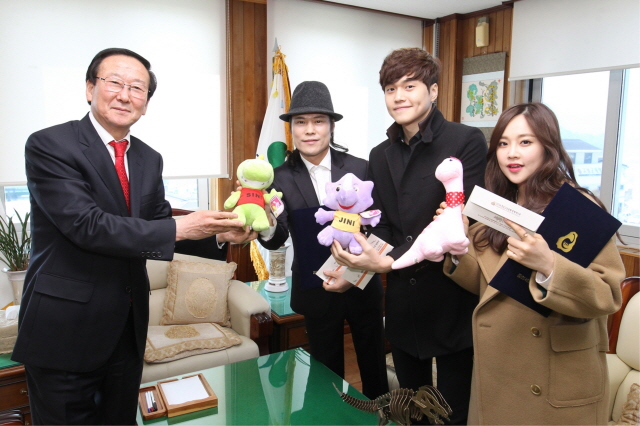 (재)경남고성공룡세계엑스포조직위원회(위원장 최평호)는 14일(월)오전, 군청 군수실에서 인기가수 소명 가족 3인을 경남고성공룡엑스포 홍보대사로 위촉했다고 밝혔다.