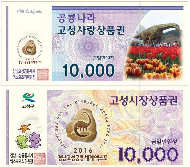 - ‘공룡나라고성사랑상품권’, ‘고성시장상품권’10만매 발행