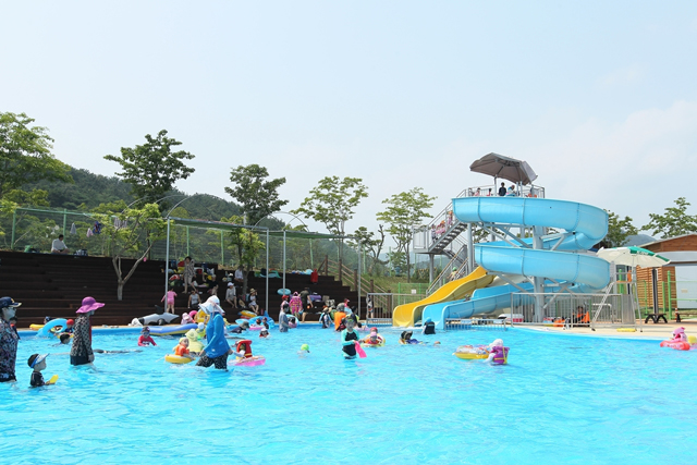 당항포관광지 내 환영의 문 입구 쪽에 위치한 야외풀장은 이용객의 안전을 위해 지름 5m 규모의 유아용 원형풀장과 길이 38m, 폭 28m 규모의 어린이·청소년 풀장으로 구분해 운영하고 있다. 특히 워터슬라이드 2동(회전형37m, 직선형9.7m)은 이용객들에게 박진감과 재미를 더해주고 있다.