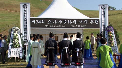 제34회 소가야문화제 서막을 알리는 서제가 30일 오후 송학리 소가야고분군에서 이학렬 군수와 도충홍 고성문화원장 성정기 고성교육장 등 많은 내빈들과 시민들이 참여한 가운데 봉행됐다.