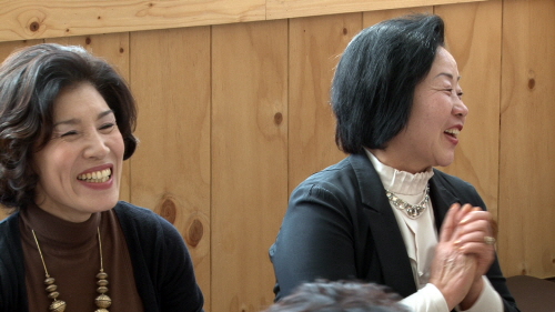 | ▲ 환담을 나누는 박외숙 차기회장(왼쪽)과 김희숙 회장(오른쪽) |