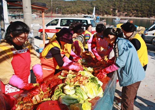 대한 적십자사 삼산면 봉사회(회장 박 영수)원들은 16일 오전 삼산면 장치리에 있는 사랑 나눔 공동체(원장 우석주) 지체 장애자 수용시설에서 김장김치 300포기를 담그는 봉사활동을 벌였다.