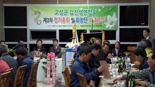12일 저녁, 고성읍내 한 연회장에서 고성군갑진생연합회 이상영 회장과 회원 100여명이 참석한 가운데 2011년 제3차 정기총회 및 회장단 이·취임식이 열렸다.