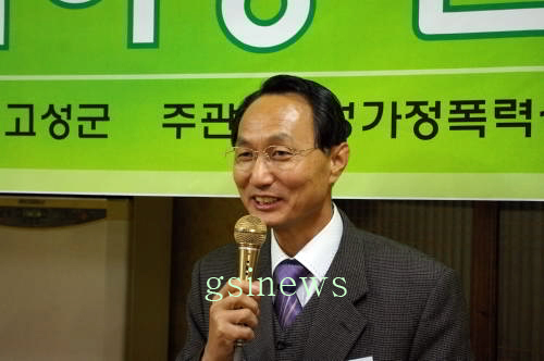 ▲ 인사말 하는 최학무 고성가정폭력상담소장