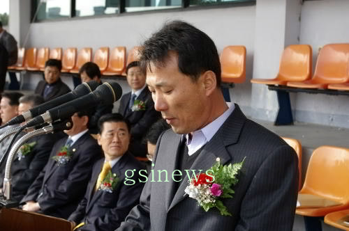 | ▲ 대회사 하는 차형호 고성군 축구협회장 |