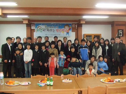 오늘 행사는 ‘열린학교’ 기간 동안 장애아동들이 체험한 학습 내용들을 담은 영상물을 감상하는 시간과 졸업장과 상장수여에 이어 새고성라이온스 송석호 회장으로부터 1백만원의 기금을 전달받았으며, 2부 행사에서는 다과회를 마련해 참석한 관계자들과 장애인부모회원이 함께 덕담으로 나눔의 시간을 가졌다.