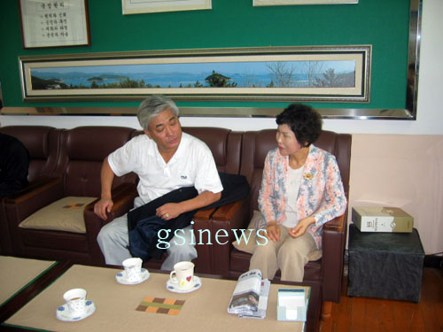 ▲ 안필자 교장과 환담하는 최재걸 씨