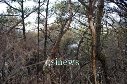 | ▲ 오르는 길에 많은 소나무들이 저렇게 죽어가고 있었다. 재선충에 감염된건지 아닌지 알수 없으나 심각해 보였다. |