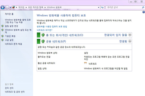 ▲ [그림 2 윈도우즈 7의 내장 방화벽이 설정된 상태