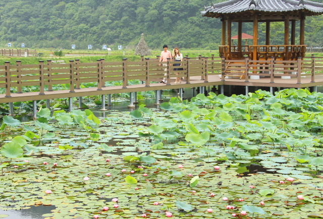 고성군 상리면 척번정리에 자리한 상리 연꽃공원의 연꽃이 하나 둘 꽃망울을 틔우기 시작해 이곳을 찾는 관광객들의 발걸음을 붙잡고 있다.