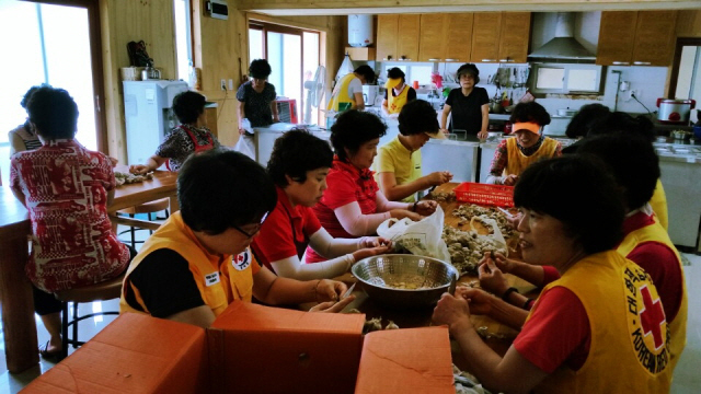 대한적십자사 봉사회 고성지구협의회(회장 이외숙) 회원들은 오늘 부터(7월26일~28일) 3일간 고성읍 우산리 옥골사(자범스님)에서 적십자 "희망풍차 결연세대 밑반찬 나누기" 사업의 일환으로 150가구에 전해줄 밑반찬 만들기를 실시해 여름철 무더위도 시원하게 날려 보내는 땀과 함께 의미있는 시간을 보내고 있다.
