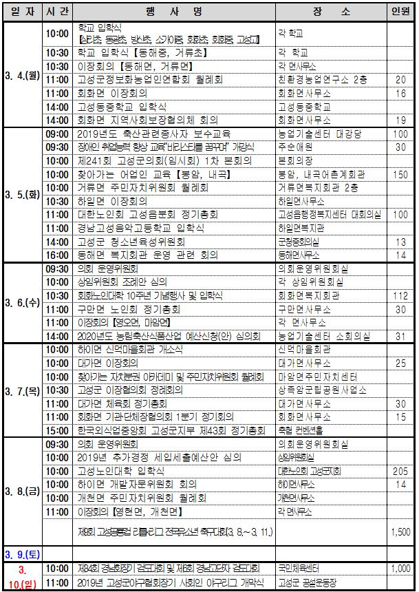 고성군 주간행사예정표(2019년3월4일~3월10일)