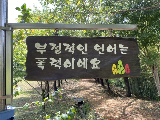 그렇다면 나무판 속 "부정적인 언어는 폭력이에요"란 글귀가 무엇이 어떻게 잘 못 됐는가 알아보자.