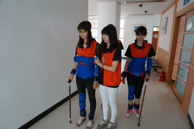 이날 교육은 경상남도노인보호전문기관의 소개로 시작돼 노인의 정의, 노인학대의 유형 그리고 학생들이 직접 노인유사체험장비를 착용함으로써 신체적 노화를 경험해보는 순서로 진행됐다.