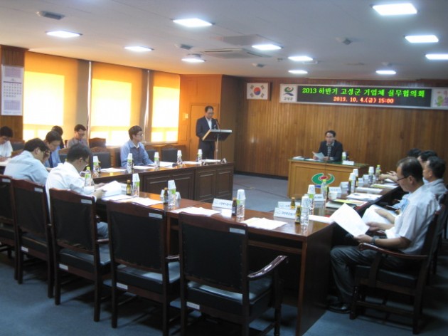 고성군은 10월 4일 오후, 군청 중회의실에서 기업체 실무자 15명이 참석한 가운데 2013년도 하반기 고성군 기업체 실무협의회를 개최했다.