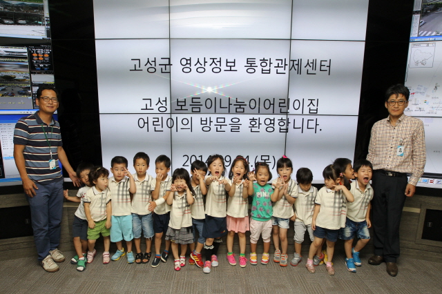군은 각종 범죄예방과 안전에 대한 인식을 넓히기 위해 지난 8월 25일부터 견학 프로그램 참여자를 모집해, 4일 오전 고성보듬이나눔이 어린이집 어린이 90여 명이 영상정보통합 관제센터를 방문했다.