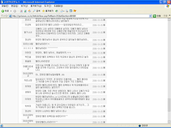 관련한 보도를 접한 많은 군민과 학생들이 댓글을 달고 격려를 보내는