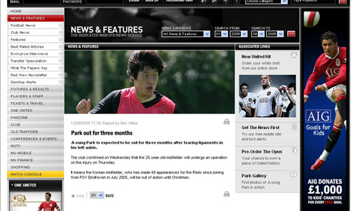 그는 한국출신 미드필더로서 2005년 7월 PSV Eindhoven으로부터 the Reds(맨체스터 유나이티드)로 결합이후 49회 출장했으며 오는 크리스마스까지 활동을 하지 못하게 된다고 밝혔다.