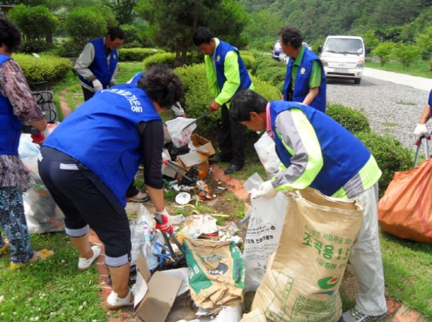 이날 청결활동으로 이들은 쓰레기 2톤(50포대)을 수거하고 빈병과 플라스틱 등 재활용품은 분리해 배출했다.