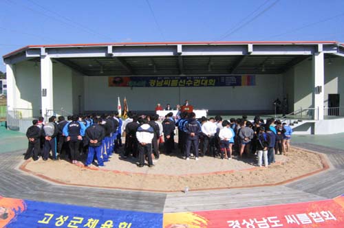 제34회 경남씨름선수권대회가 총 17개 팀이 참가한 가운데 오늘 오전 고성군 씨름전용경기장에서 시작되었다.