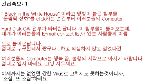 2. 메일을 여는 것만으로 시스템이 모두 파괴한다는 내용을 담고 있다.
