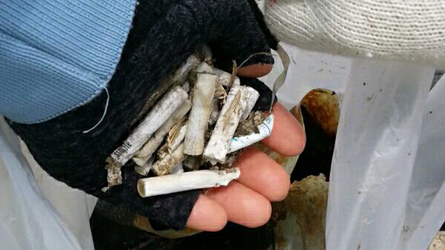 ▲이날 버려진 양심들은 작은 담배 꽁초부터 덩치가 큰 재활용 생활 쓰레기까지 다양했다.